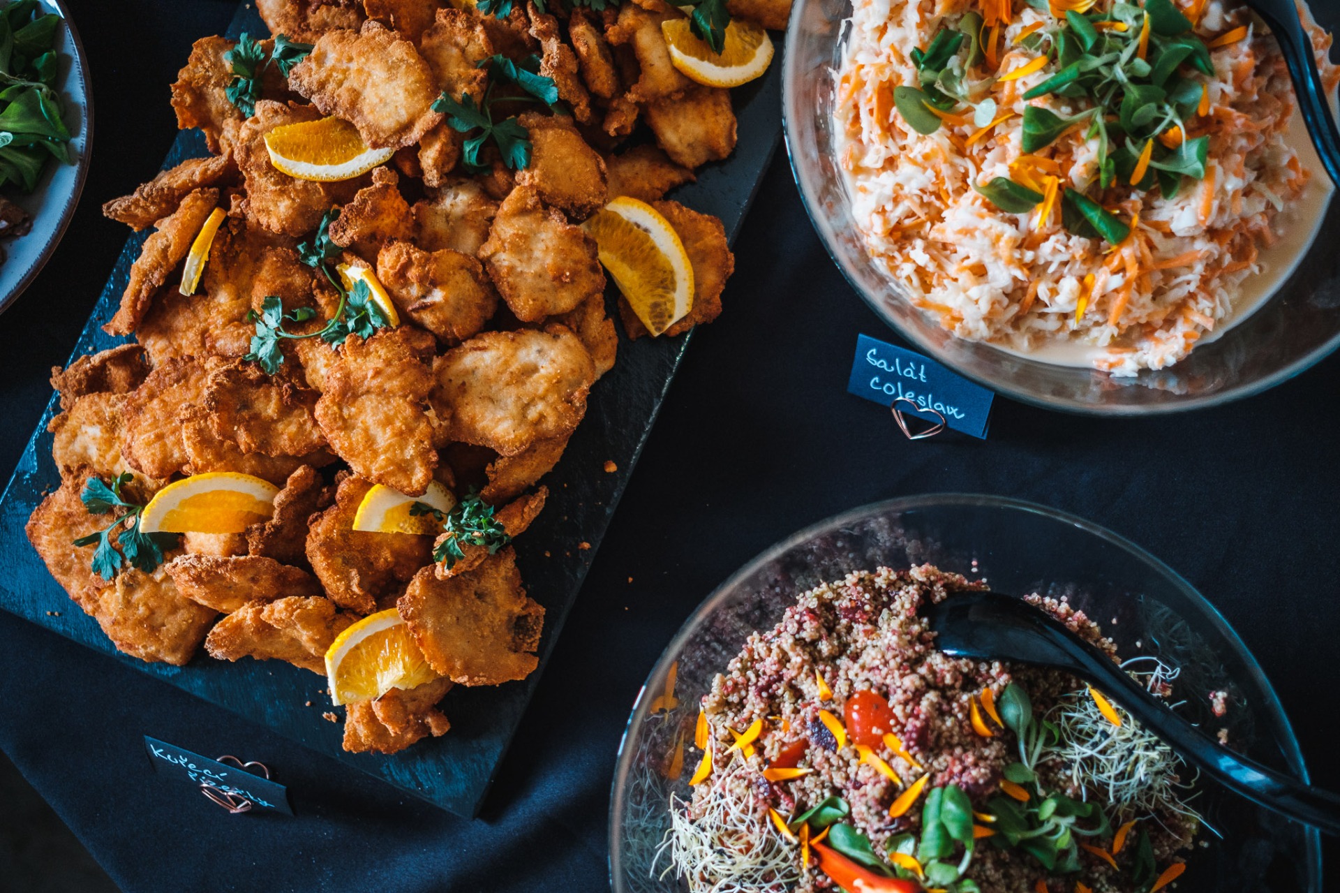 Připravujeme malé i velké cateringy, slané i sladké, studené i teplé. Umíme styl Bistropen i klasiku – od burgerů až po žebírka.